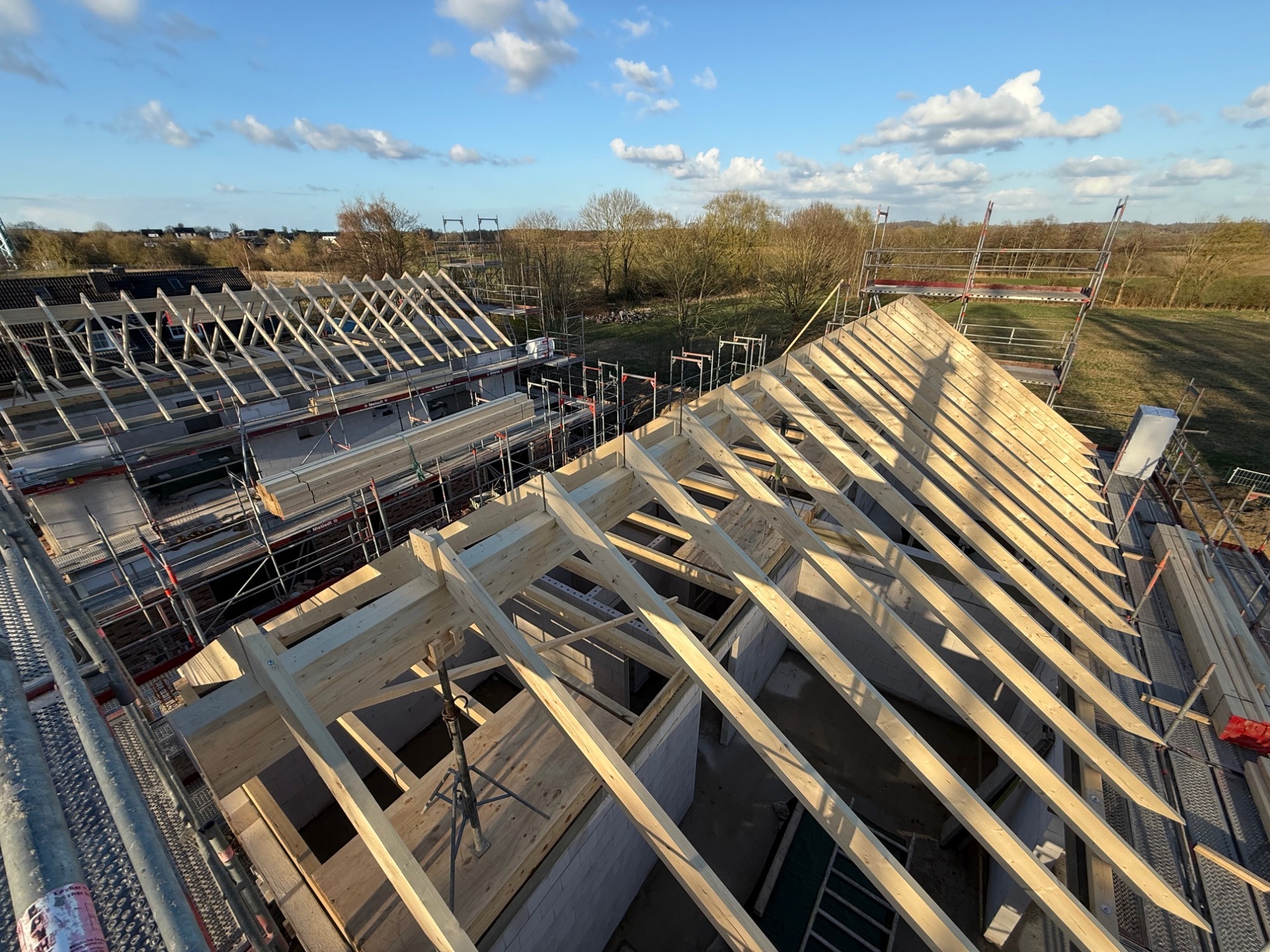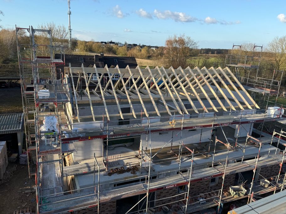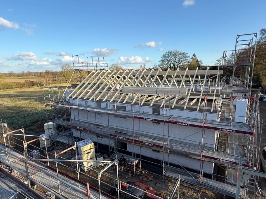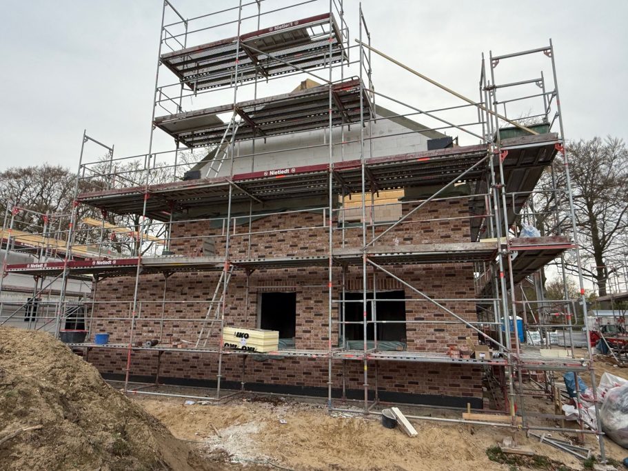 Haus 51c + 51d mit Gerüst für Dachstuhl