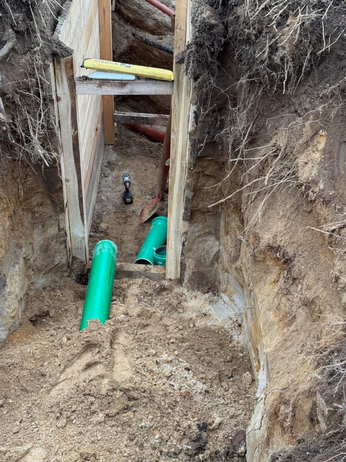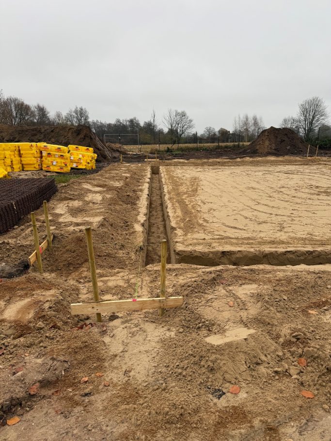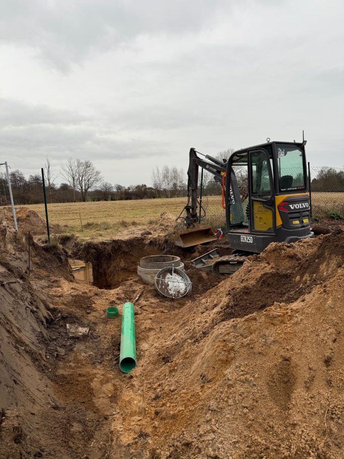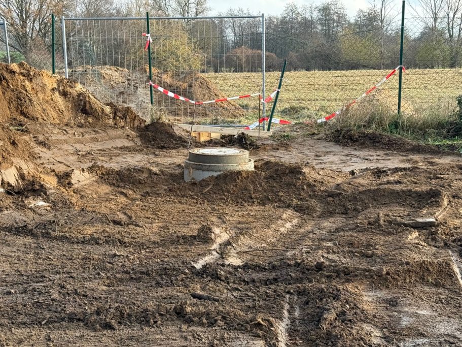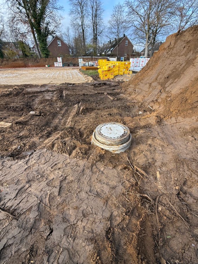 Setzen des Abwasserschachtes I Letzte Baugrube gefüllt I Die Erdarbeiten sind beendet